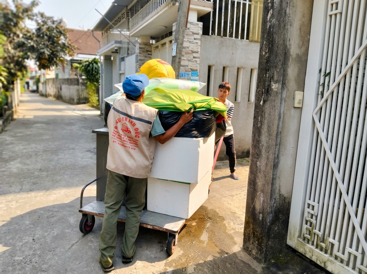 Dịch vụ chuyển nhà trọn gói bao gồm tháo lắp đồ đạc, đóng gói, bốc xếp, vận chuyển và sắp xếp lại tại địa điểm mới theo yêu cầu.